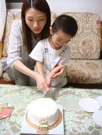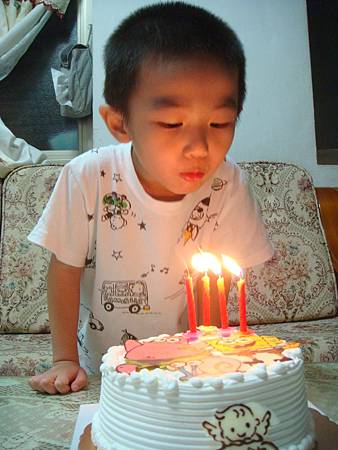 阿姨一度很擔心,他在蛋糕上會吹出口水來,不想讓他吹蠟燭勒!