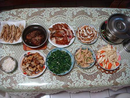 阿媽今天煮的一如往常很澎湃在等我們~八菜一湯+一大鍋米粉+一鍋飯
